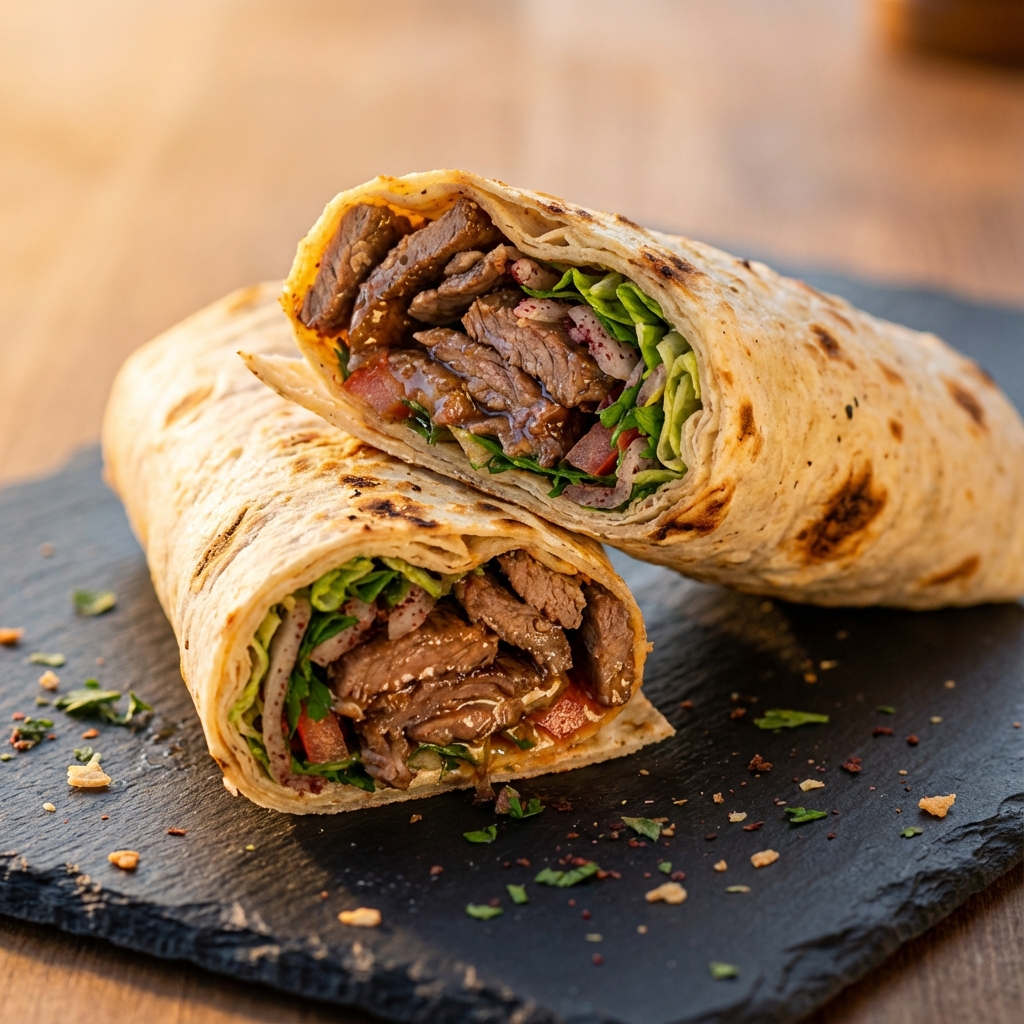 İncecik lavaş ekmeği arasında yaprak döner keyfi. Özel sosumuzla lezzetlendirilmiştir.